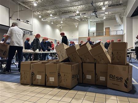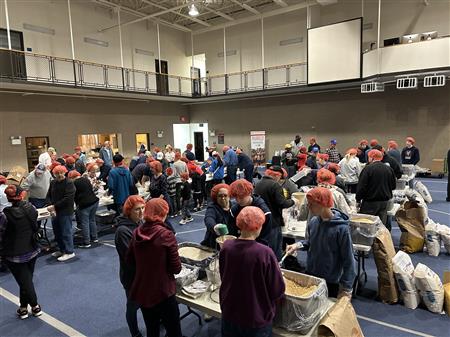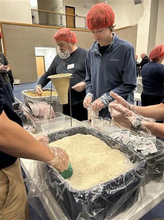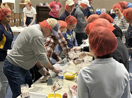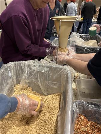 March 9, 2024. Colleyville Rotarians united with the local community and the Colleyville First United Methodist Church to provide and pack 20,000 meals for Rise Against Hunger which they will distribute throughout the world wherever there is a need.